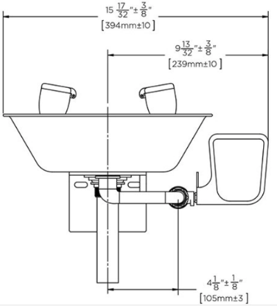 - عرض محطة غسل العين: 39.4 سم (± 10 مم).