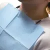 مريلة أسنان لحماية ملابس المريض من الاتساخ بالسوائل أو الدم أثناء القيام بفحص الأسنان وعلاجها في عيادة طبيب الأسنان. تستخدم المريلة لمرة واحدة فقط. تحتوي العلبة على 500 مريلة.