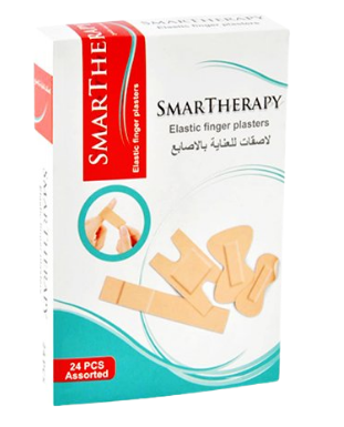 بلاستر بقياسات مختلفة خاص بجروح الأصابع. يستخدم البلاستر لحفظ الجروح من التلوّث والالتهاب. تحتوي العلبة على 24 قطعة من بلاستر بأشكال مختلفة. العلامة التجارية: SMARTHERAPY.