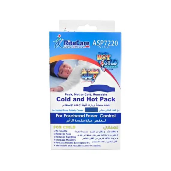 كمادة جل حار وبارد لخفض حرارة الأطفال مع غطاء ASP7220 توضع الكمادة الباردة على جبهة المريض لخفض الحرارة توضع الكمادة الحارة على مواضع آلام العضلات والمفاصل والبطن تستخدم الكمادة الباردة لخفض الحرارة الناتجة عن العدوى مثل الأنفلونزا والالتهابات. تستخدم الكمادة الحارة لتخفيف الآلام الناتجة عن الإصابات أو المغص