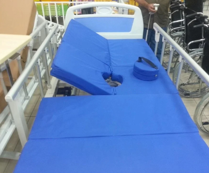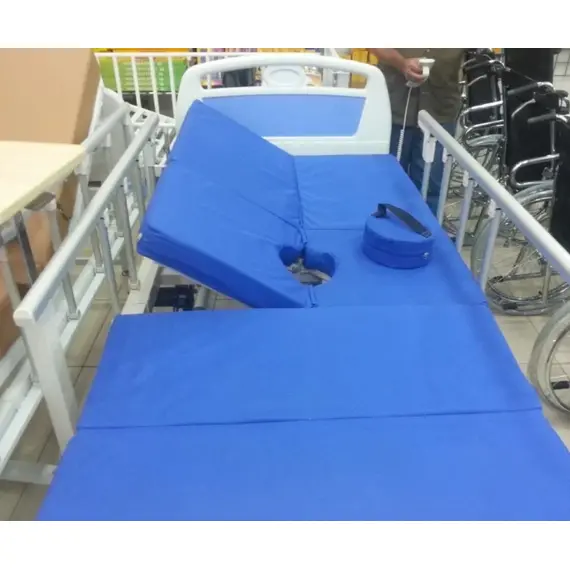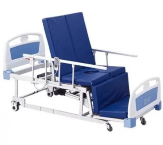 • السرير مزود بقصرية وفي المرتبة فتحة مقعدية لمساعدة المريض على قضاء الحاجة.