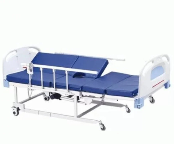 السرير كهربائي متعدد الحركات والمزايا، مناسب لطريحي الفراش، مزود بفكرية والمرتبة مزودة بفتحة مقعدية لتوفير الراحة القصوى للمريض، ويمكن قلب السرير للجانب الأيمن والأيسر مما يساعد على التقليل من تقرحات السرير.