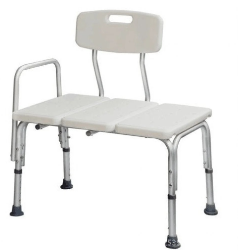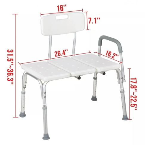 Wide Shower Chair with Armrests and Back Support for Elderly Assistance in Bathrooms. Provides stability and support while sitting and bathing, enhancing safety and comfort.