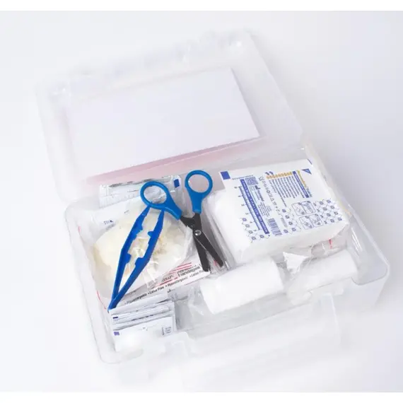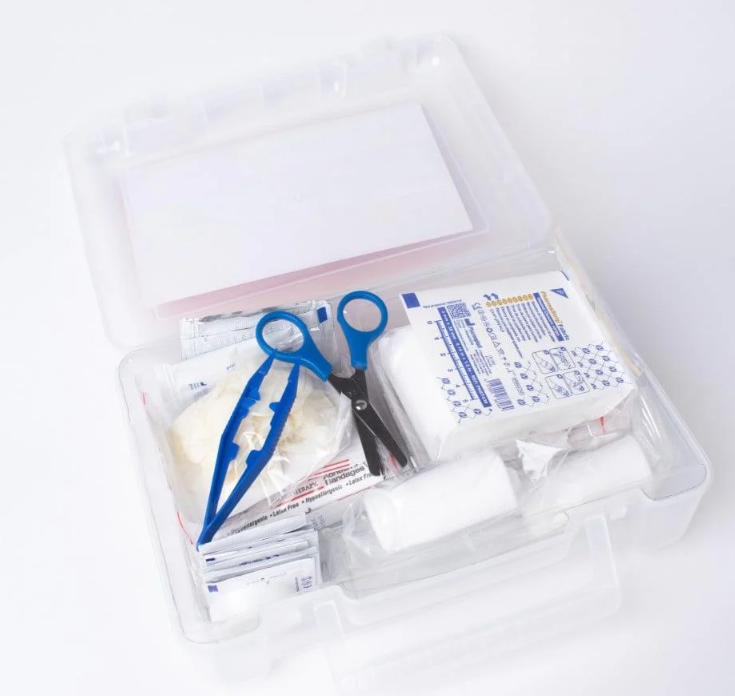 Large transparent plastic first aid kit