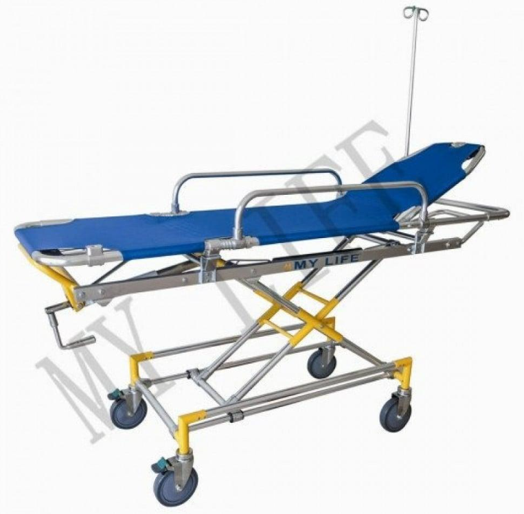 - - A stretcher trolley used in hospitals for transporting patients and the injured.