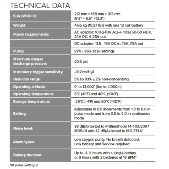 - This portable oxygen concentrator delivers up to 2 liters of oxygen per minute, according to the patient's requirements.