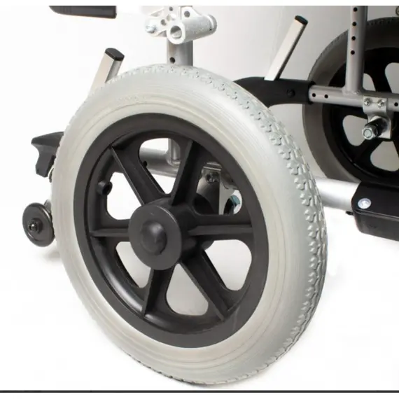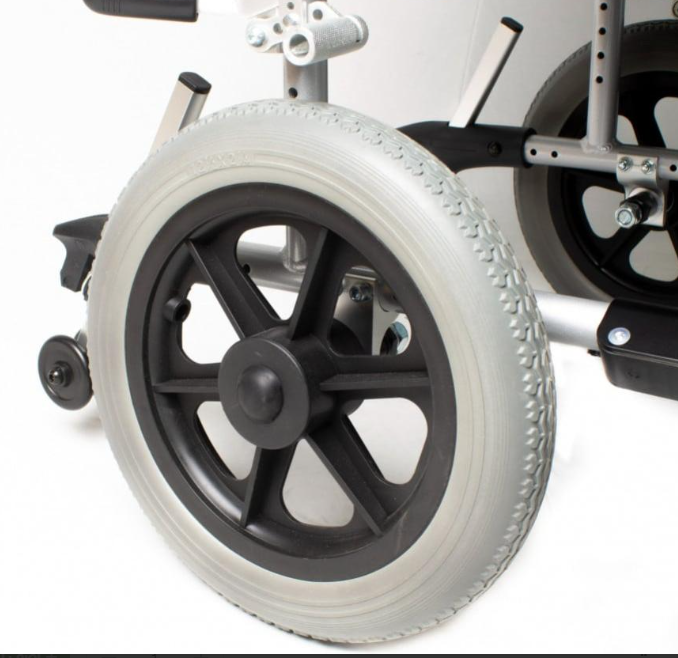 Thanks to its aluminum frame and compact design, this transport wheelchair can be easily carried and stored in a car trunk, making it ideal for short trips and vacations. With its powder-coated steel frame, the transport wheelchair is perfectly stable and performs well on roads.With its detachable armrest and detachable leg rest, the motorized transport chair can be folded down to allow it to fit into most car trunks without difficulty.