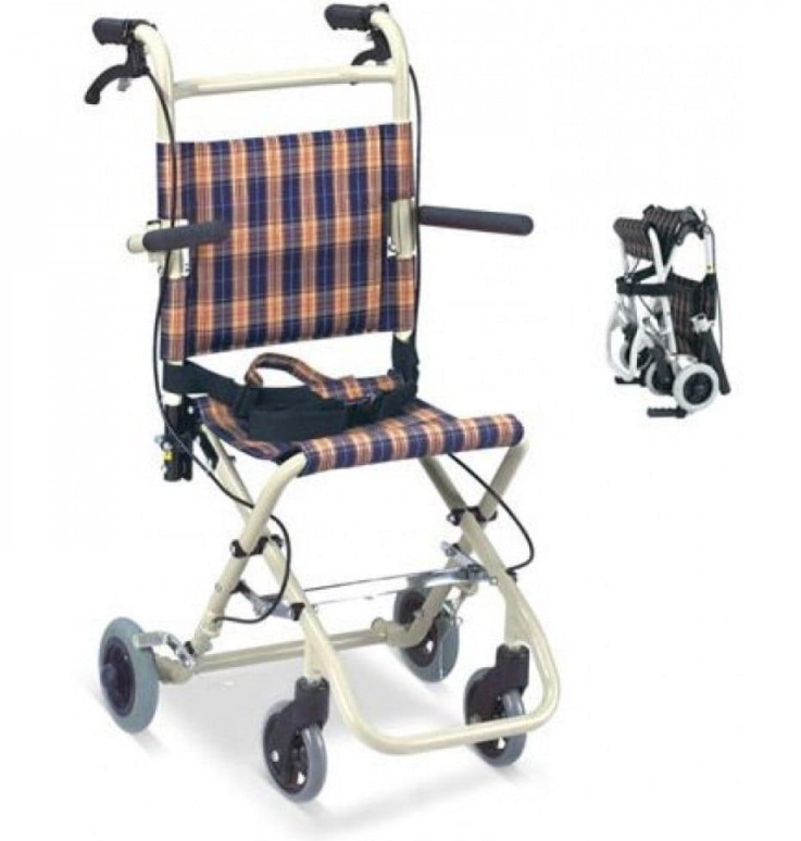 A two-seater wheelchair specially designed for airplanes that can easily pass between aisles, is foldable, and can be placed in the airplane's overhead compartment (the only chair that allows boarding the airplane).