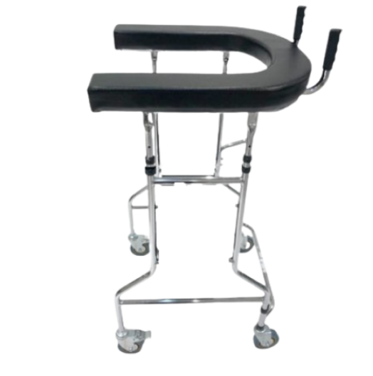 A standing walker with arm support consisting of a leather surface with sponge padding to provide comfort for the patient and is used in multiple cases such as atrophy and weakness of the foot or leg muscles and motor imbalance to enable the patient to perform many activities comfortably and safely.