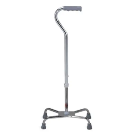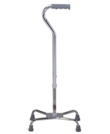 Four-legged crutch with a curved handle