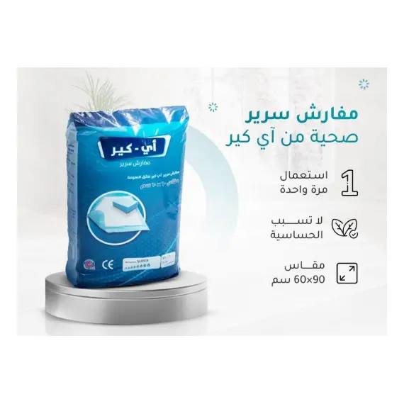 Healthy bed sheets, iCare 15 sheets, 90x60, high absorbency, prevents leakage and protects beds, mattresses and wheelchairs with a soft top layer that is gentle on the skin.- 15 bedspreads.