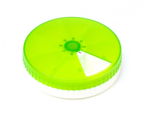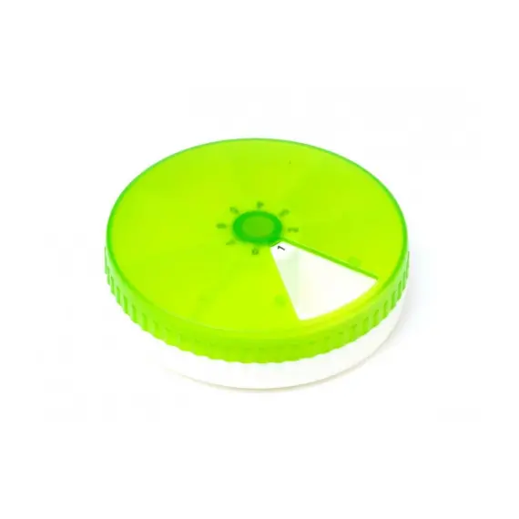 • A round, transparent medication organizer for the week.