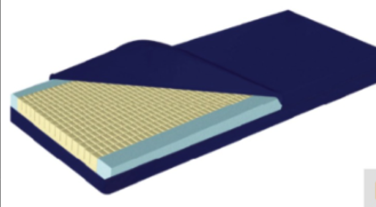 High-resilience foam mattress, D25 density, with a non-slip base, air cubes, waterproof and heat-resistant cover.