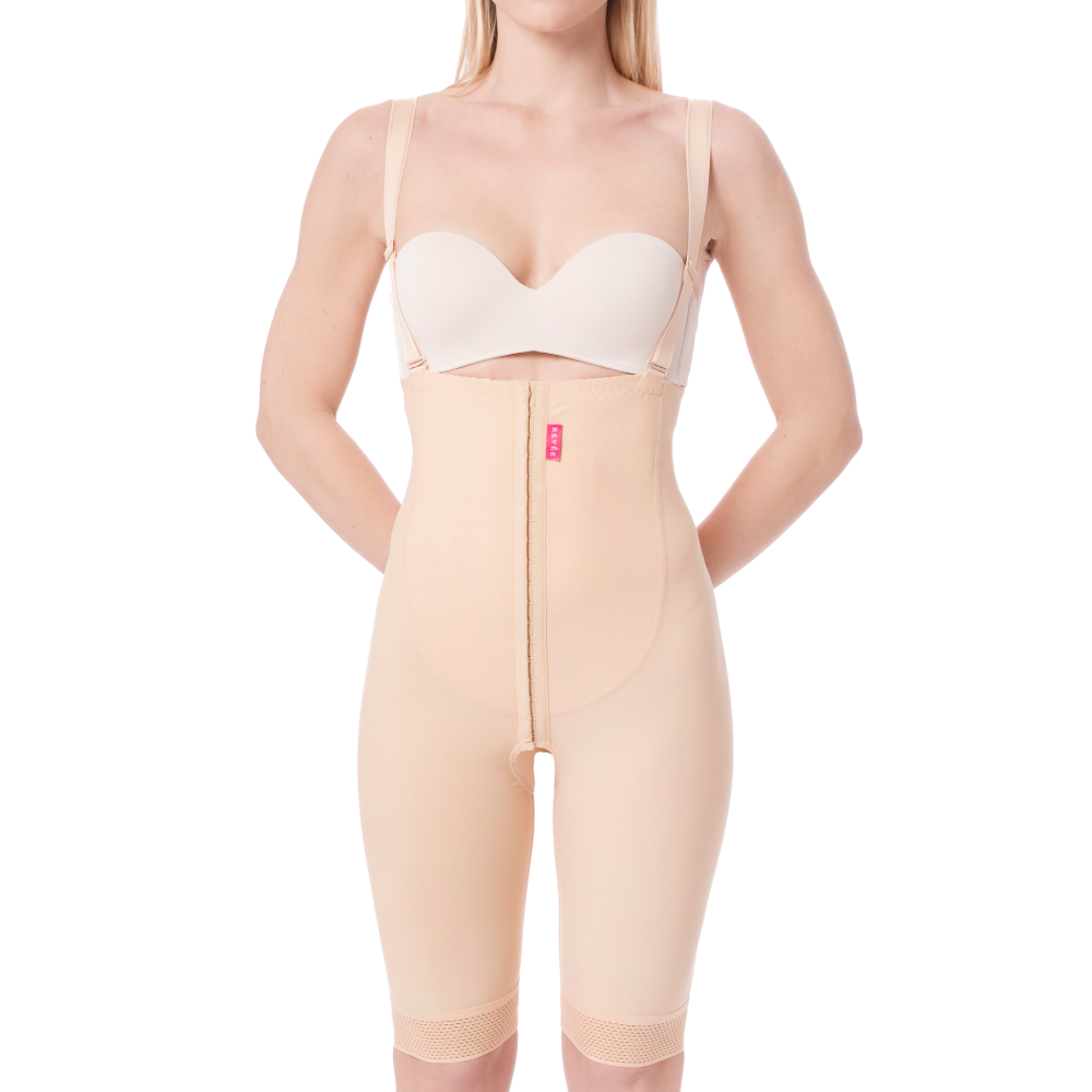 الجزء اللامع من القماش بالداخل يجعل من السهل على قطعة الملابس أن تنزلق عند ارتدائها . كما أنها مريحة جدًا للعاملين في مجال الرعاية الصحية، حيث سيساعدونك على ارتداء الملابس مباشرة في غرفة العمليات بمجرد الانتهاء من الجراحة. يضمن الدعم الكبير الموجود في المقدمة إجراء تقييد فعال ، مما يعزز شكل البطن والساقين، مع ضمان الملاءمة المثالية. المواد المريحة وغير السامة والمضادة للحساسية المستخدمة، بالإضافة إلى تأثير الضغط المثالي، هي المكونات المثالية ليشعر كل من الطبيب والمريض بالرضا التام.مع هذا الملابس الضاغطة الحديثة وعالية الأداء. تسمح لك الأقواس القابلة للتعديل والإزالة والقسم المزدوج من الخطافات في المقدمة بتعديل الملابس بشكل مثالي. بفضل فتحة النظافة الواسعة، ستتمكن من ارتدائه على مدار 24 ساعة في اليوم.