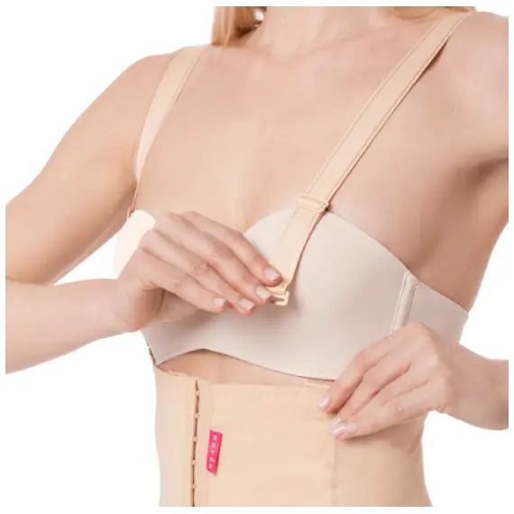 المواد المريحة وغير السامة والمضادة للحساسية المستخدمة، جنبًا إلى جنب مع تأثير الضغط المثالي ، هي المكونات المثالية لكل من الطبيب والمريض ليكونا راضين تمامًا عن هذا الملابس الضاغطة الحديثة وعالية الأداء. تسمح لك الأقواس القابلة للتعديل والإزالة والقسم المزدوج من الخطافات في المقدمة بتعديل الملابس بشكل مثالي. بفضل فتحة النظافة الواسعة، ستتمكن من ارتدائه على مدار 24 ساعة في اليوم.