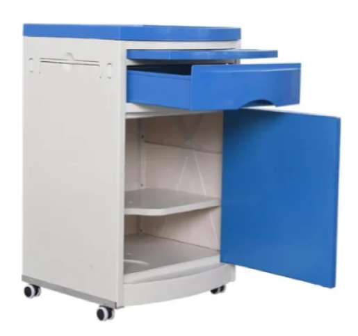 تستخدم دولاب كومدينو المتحرك المصنوع من الألياف الزجاجية بجانب السرير لتوفير المساحة والتخزين لكل ما يتعلق بالمريض داخل الغرفة من أدوية وملابس وأدوات لتغيير الجروح