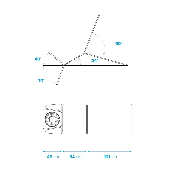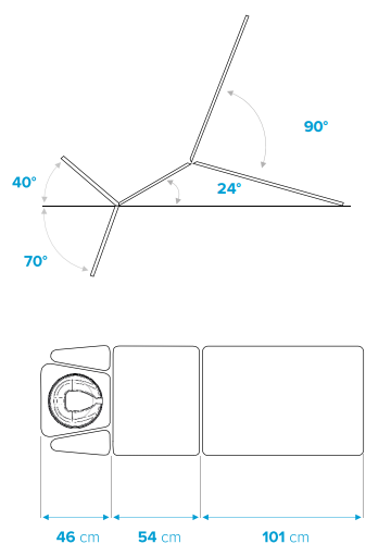 • Adjustable leg section from 0° to 90° with a gas spring.