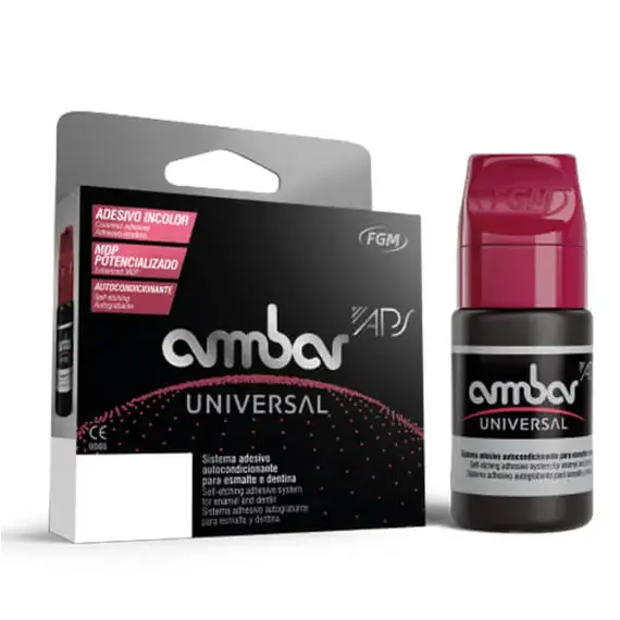 Enhanced MDP: In Ambar Universal APS, the MDP is more reactive, which has been achieved by redistributing the concentrations between solvents, water and acidic monomers. This higher reactivity increases the adhesive capacity to dentin (mainly without previous acid etching) and indirect substrates, besides providing adhesive film stability.