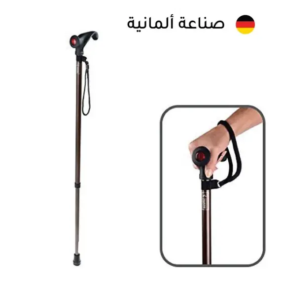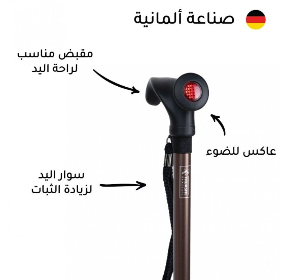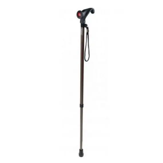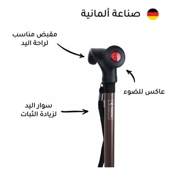 A medical walking stick for the elderly, ideal for seniors or those with special needs. It is made of aluminum, making it durable and lightweight. the walking stick also features a wrist strap for added security. In addition, the soft foam handle is comfortable to grip, and the stick folds easily for transport or storage.