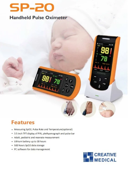 جهاز SP-20 لفحص الأكسجين بتصميم بسيط ونظام قراءة موحد عالميًا.