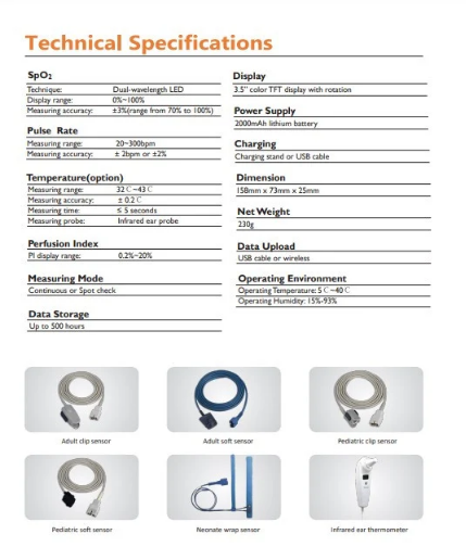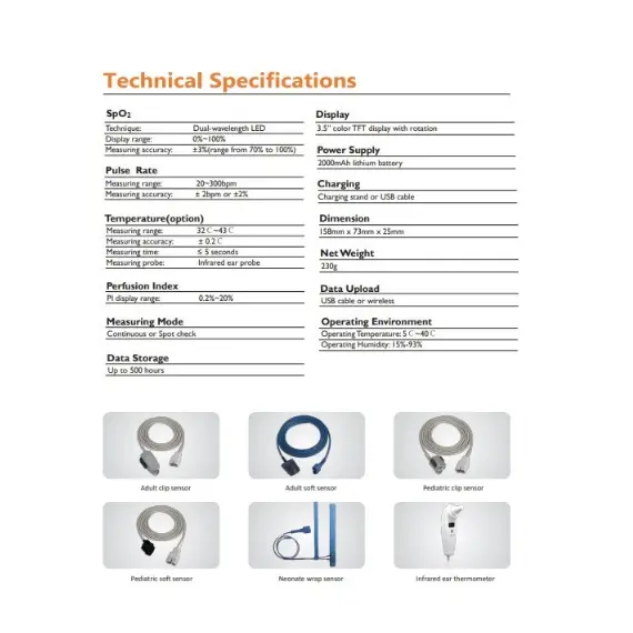 يتناسب الجهاز مع العديد من أجهزة الاستشعار كملقط طرف الأصبع، ملقط الأذن، حزام حول الرأس وغيرها.