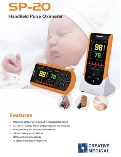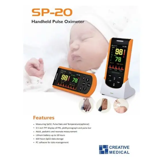 The SP-20 pulse oximeter features a simple design and a universally standardized reading system.