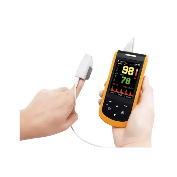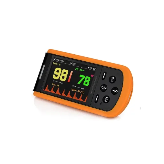 Designed to measure SpO2 (blood oxygen saturation), pulse rate (PR), PI (perfusion index), and temperature with high precision (infrared thermometer optional). Suitable for Adults, Neonatal/Neonatal (infant foot oximeter measurement), Pediatric/Toddler. It is available and widely used for home use in medical environments, and comfort monitoring in clinics and healthcare facilities.