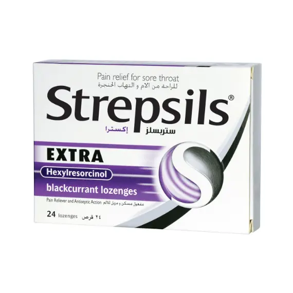 STREPSILS EXTRA BLACK CURRANT FLAVOR 24 LOZENGES