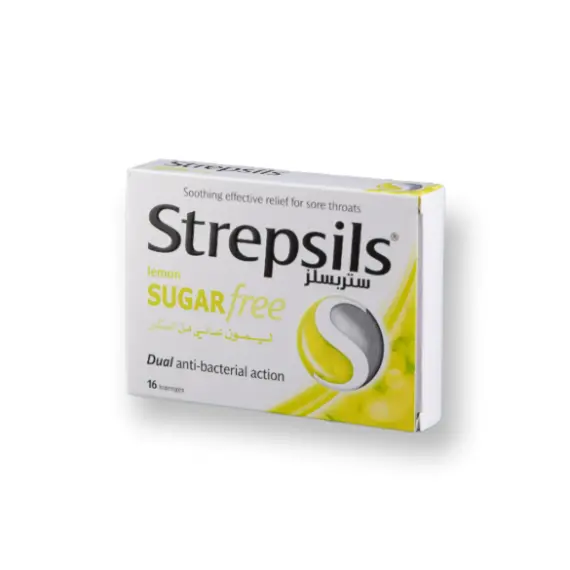 Sore throat relief is just sugar-free, Strepsils Sugar-Free Lemon Lozenges fight sore throats with soothing sugar-free lemon flavour.