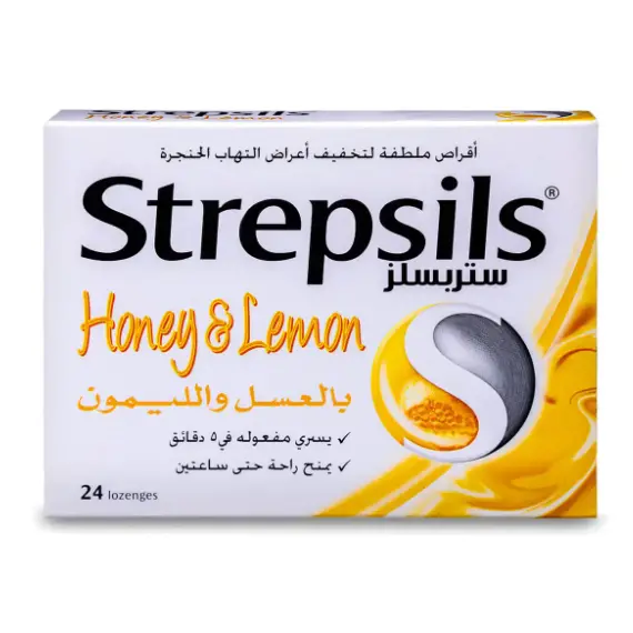 Strepsils Honey and Lemon relieves the discomfort of sore throats through its dual anti-bacterial action with a soothing honey and lemon flavour.