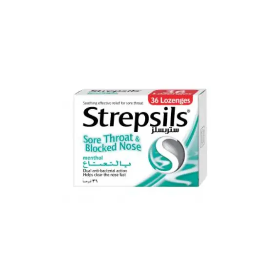 Strepsils Mint flavour soothes sore throats and blocked noses thanks to its dual formula containing (2,4-dichlorobenzyl alcohol, 0.6 mg amyl metacresol