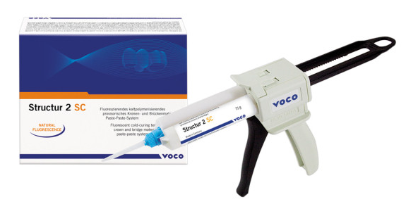 Structur 2 SC Cartridge, 75 g, Blue (BL). A temporary crown and bridge material designed for fast and precise fabrication of provisional restorations. Offers ideal hardness, natural gloss, and easy application and shaping directly in the dental clinic.
