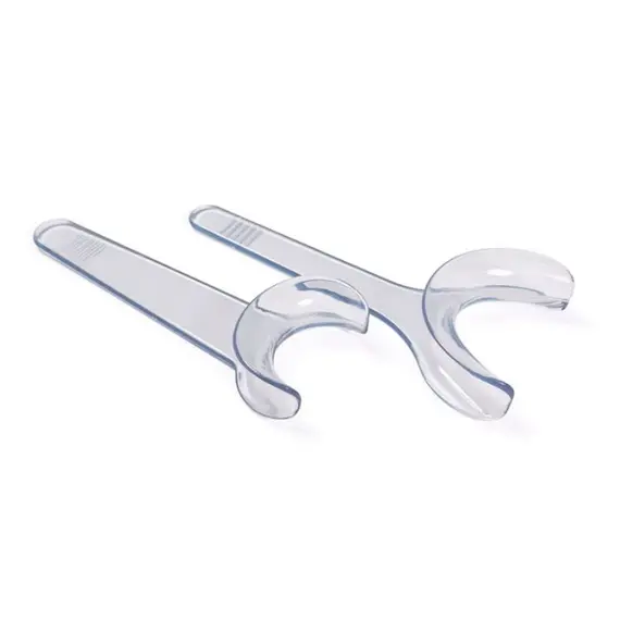 A large-sized T-shaped cheek retractor designed for dental procedures to provide clear visibility and access to the oral cavity. Made from durable, medical-grade plastic for comfort and repeated use. Supplied in a bag containing 2 pieces, ideal for professional dental and orthodontic practices.
