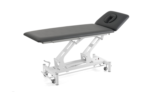 • 2-section table for massage, manual therapy, physiotherapy. • Adjustable head section from -70° to +40° with a gas spring. • Face hole in the head section with 2 removable face hole covers (round, crescent). • Two-layer padding with non-flammable, bio-compatible and scratchproof upholstery in many colours. • Powder coated, extremely stable steel frame. • 2 side brackets for fixation of stabilization belts and elastic bands. • Traction support sleeves. • Personal Authorization Safety System with 2 safety magnetic keys. • HalloTronic® System for electric high/low height adjustment from 47 to 95 cm with a capacity up to 225 kg. • Powder coated steel high/low height adjustment foot bar accessible from each side of the table. • Non-slip rubber feet with 1 cm height adjustment allowing for the levelling of the table. • Two ways of frame painting: ,,white” or ,,twintone”.