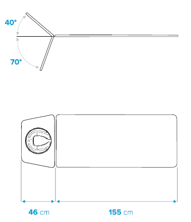 Additional option: • Built-in adjustable surface heating system. • Upholstery of 80 mm thickness. • Upholstery of 80 cm width.