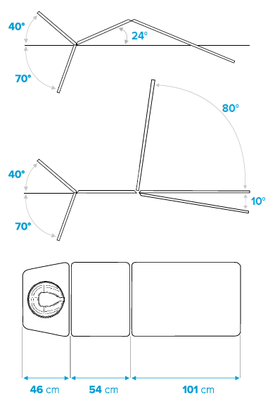 • Adjustable leg section from -10° to 80° with a gas spring.