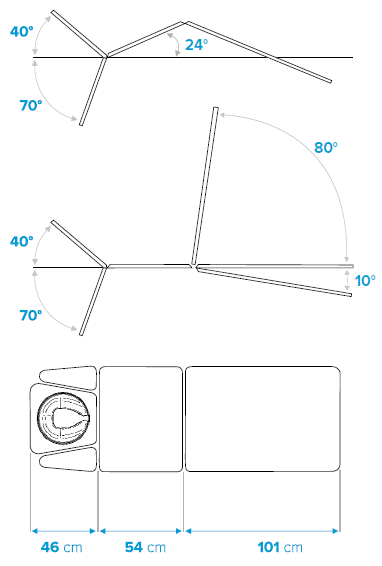 • Adjustable leg section from -10° to 80° with a gas spring.