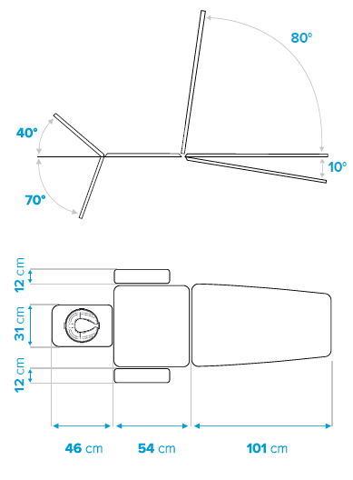 • Narrow (31 cm), adjustable head section from -70° to +40° with gas spring.