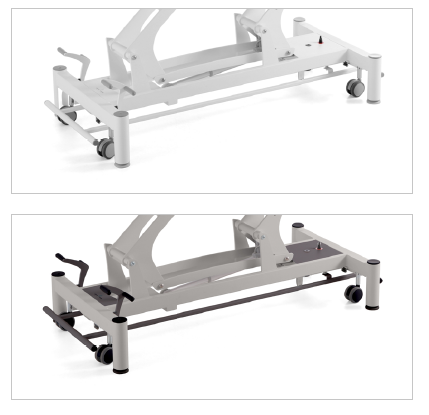 • 7-section table for massage, manual therapy, physiotherapy. • Postural drainage with an electric motor operated by 2 switches from both sides of the table. • Adjustable head section from -70° to +40° with a gas spring. • Face hole in the head section with 2 removable face hole covers (round, crescent). • Innovative self-locking fold-down armrests in head section (one hand operated) - SmartS4Arms (Smart Slide For Arms). • Adjustable leg section from -10° to 80° with a gas spring. • Fold-down side sections in the middle section with a semi-automatic blocking/ release system. • Release handle of the gas spring system in the leg section accessible from both sides of the table. • Two-layer padding with non-flammable, bio-compatible and scratchproof upholstery. • Powder coated, extremely stable steel frame. • Traction support sleeves. • Personal Authorization Safety System with 2 magnetic safety keys. • HalloTronic® System for electric high/low height adjustment from 51 to 99 cm with a capacity up to 225 kg. • Powder coated steel high/low height adjustment foot bar accessible from each side of the table. • Non-slip rubber feet with 1 cm height adjustment allowing for the levelling of the table.