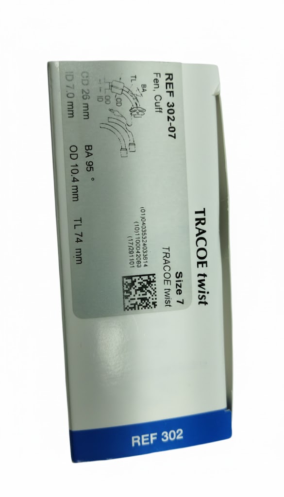 High-quality Tracoe Twist fenestrated tracheostomy tube with cuff, designed to support effective airway management and enable speech. Made from medical-grade materials for patient comfort, safety, and long-term clinical use. Ideal for hospital and ICU applications.