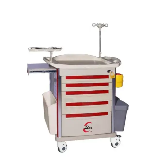 - تحتوي عربة طوارئ على بعض الأدراج والأرفف المصممة بدقة عالية لتخزين وتنظيم المعدات والأدوات الطبية.