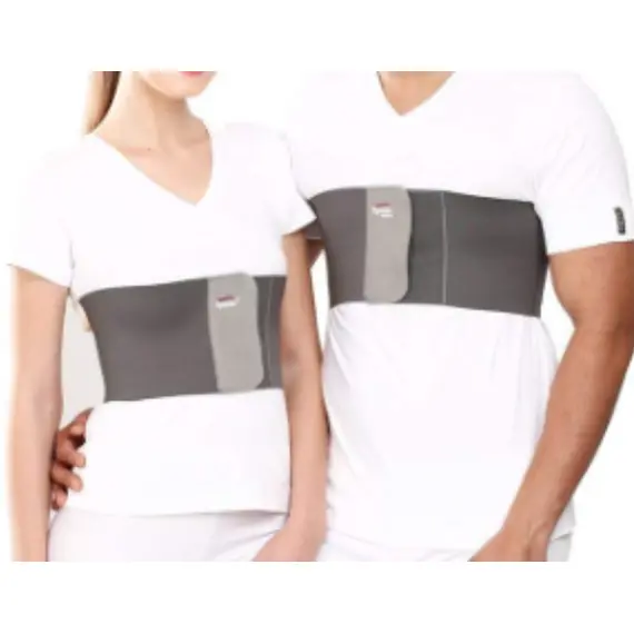 يتم استخدام مشد الضلع على منطقة البطن والصدر العليا لضغط وربط القفص الصدري خلال الكسور في الأضلاع والرعاية ما بعد الجراحة ، مع السماح بمرونة كافية للتنفس المريح.