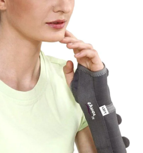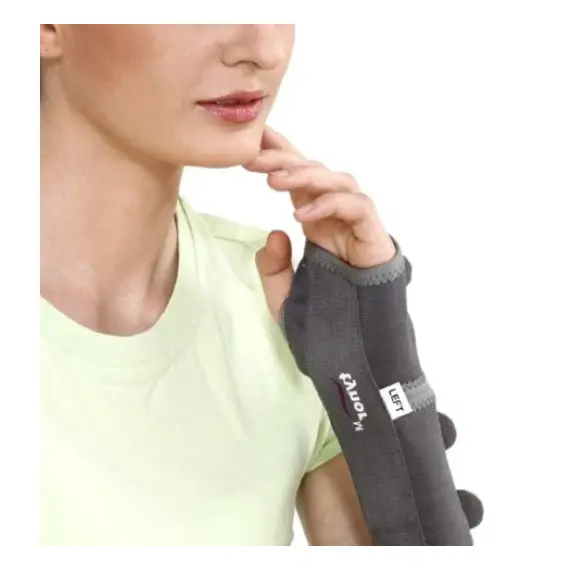 It is designed to immobilize and provide strong support to the wrist and forearm in various osteopathic conditions. It keeps the wrist in a flexed/functional position while allowing a full range of motion to the fingers and thumb. It compresses and retains body heat to relieve local pain and inflammation. The product can be removed for treatment sessions, washing, and hygiene.