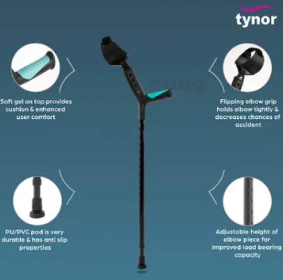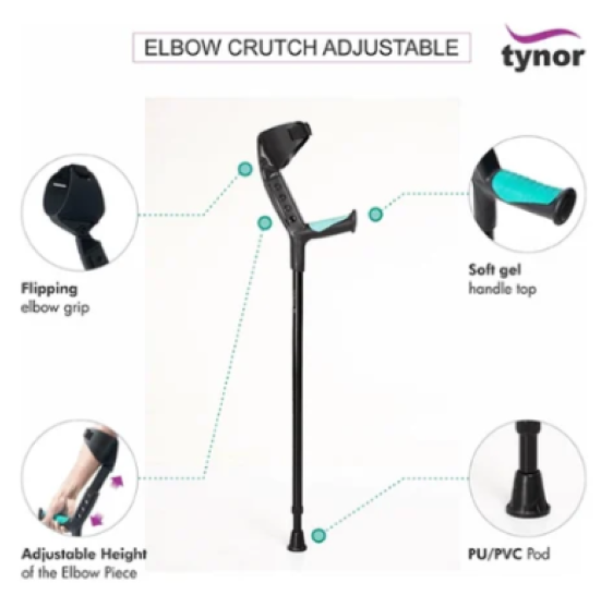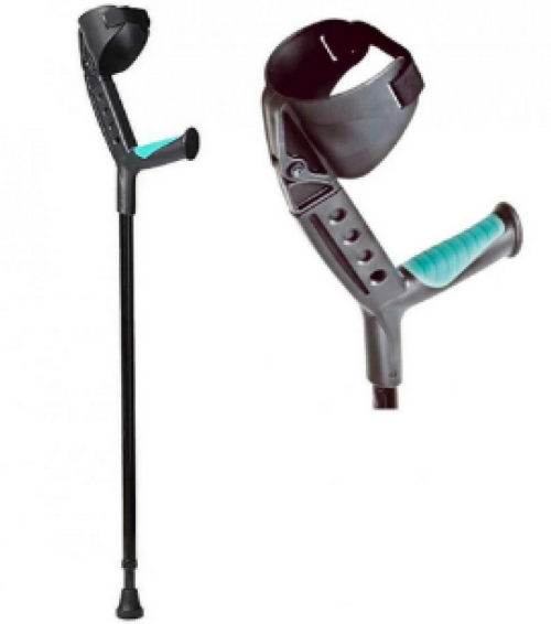 The 13L Elbow Cane is a highly advanced walking aid designed to provide full weight-bearing support when one or both legs are physically limited due to neurological disorders, fractures, illnesses, injuries, etc. More and more professionals prefer the Elbow Cane to the traditional armpit cane for greater patient confidence, less strain, and a more modern look. It boasts a high load-bearing capacity, excellent aesthetics, enhanced features, effectiveness, and a highly ergonomic design. The scientifically designed polymer handle is ambidextrous and aesthetically pleasing. A soft gel on the top of the handle provides a smooth, comfortable feel, reducing impact and transferring shock to the user's hand, and offering a better grip. It is latex-free, hypoallergenic, odorless, and durable. The height of the elbow section is adjustable, improving support and providing even elbow support, thus boosting confidence. The reversible elbow grip and hook-and-loop closure securely fasten the elbow, minimizing the risk of accidents. The hands remain free for other tasks. Constructed from a high-strength aluminum alloy, it is robust, durable, and offers excellent load-bearing capacity. Coated with anodized aluminum for long-lasting use and a beautiful, high-quality finish. Includes thermoplastic sleeves.