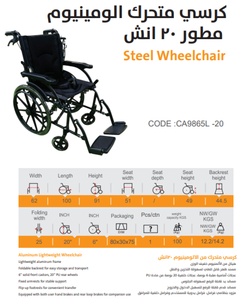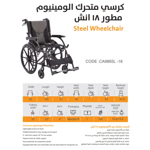 A practical and lightweight wheelchair made of high-quality aluminum, designed for easy everyday use and safe mobility.