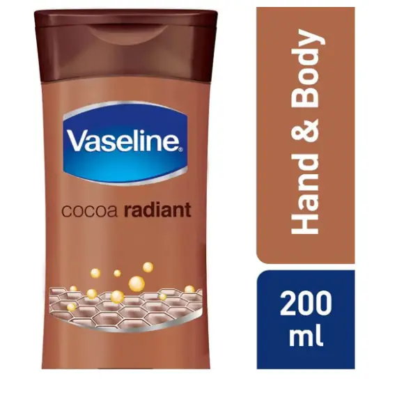 - contains droplets of Vaseline jelly which helps restore skin from within, leaving it radiant and soft