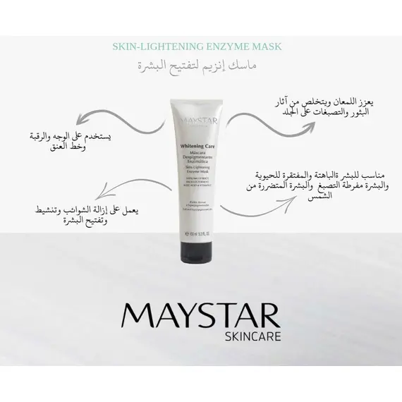 قناع انزيمي لتجديد وتفتيح البشرة ذو قوام لطيف يمكن تدليكه وامتصاصه بسهولة تعمل خصائص التفتيح القوية لمكوناته النشطة من حمض الكوجيك وخلاصة الساتسوما يترك 15 دقيقه على الوجه ثم يزال بالماء