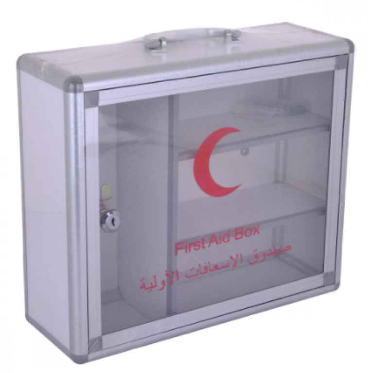 A box with all its components, made of plastic and aluminum, to keep your medications and medical supplies in one place. This first aid kit solves the problem of lost medications and ensures easy access when needed.